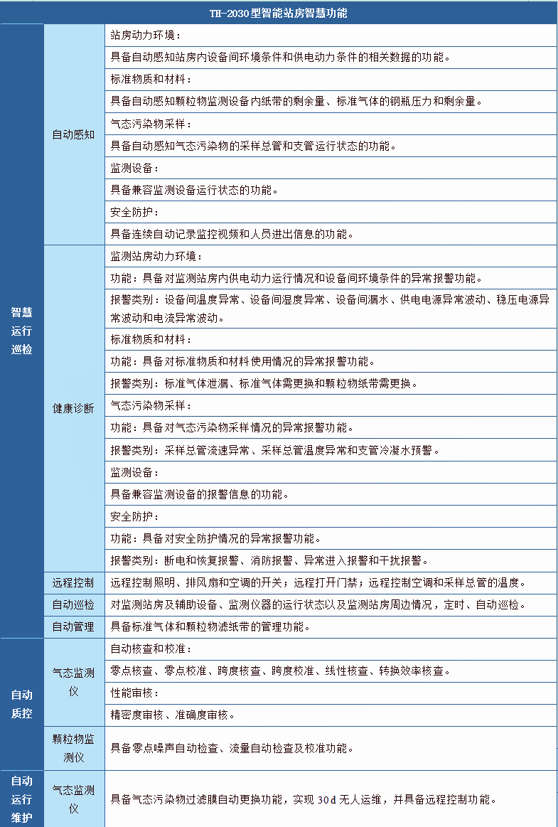 我公司智能站房集成了動(dòng)環(huán)設(shè)備、監(jiān)測(cè)設(shè)備、數(shù)據(jù)采集、智能控制、遠(yuǎn)程管理、智能預(yù)警于一體的綜合性、智能化監(jiān)測(cè)系統(tǒng)。硬件配置、功能模塊及智能化管理均符合《城市環(huán)境空氣質(zhì)量監(jiān)測(cè)點(diǎn)位智能站房檢測(cè)作業(yè)指導(dǎo)書》(CNEMC-03-ZJZX-040-2025)中對(duì)自動(dòng)化運(yùn)行和智能管理的規(guī)定??。硬件配置方面,站房主體采用保溫、阻燃材料,集成SO2、NO2、O3、COPM10PM2.5分析儀及動(dòng)態(tài)校準(zhǔn)儀、零氣源等設(shè)備;功能模塊方面實(shí)現(xiàn)環(huán)境監(jiān)控(溫濕度、煙霧、水浸監(jiān)測(cè)等)、動(dòng)力監(jiān)控(三項(xiàng)電源及穩(wěn)壓電源的電壓電流監(jiān)控)、自動(dòng)質(zhì)控(氣態(tài)污染物監(jiān)測(cè)儀和顆粒物監(jiān)測(cè)儀自動(dòng)質(zhì)控)??、自動(dòng)維護(hù)(氣態(tài)污染物監(jiān)測(cè)儀過濾膜自動(dòng)更換)、自動(dòng)巡檢;智能化管理方面,支持遠(yuǎn)程控制(空調(diào)、照明、門禁等)??、遠(yuǎn)程質(zhì)控、自動(dòng)診斷、人為干擾識(shí)別等。